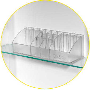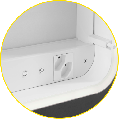 Mitgeliefert wird standardmässig die praktische Kosmetikbox und der runde Schminkspiegel mit Vergrösserung. Die am unteren Rand positionierte Steckdose bietet hindernisfreie Erreichbarkeit.